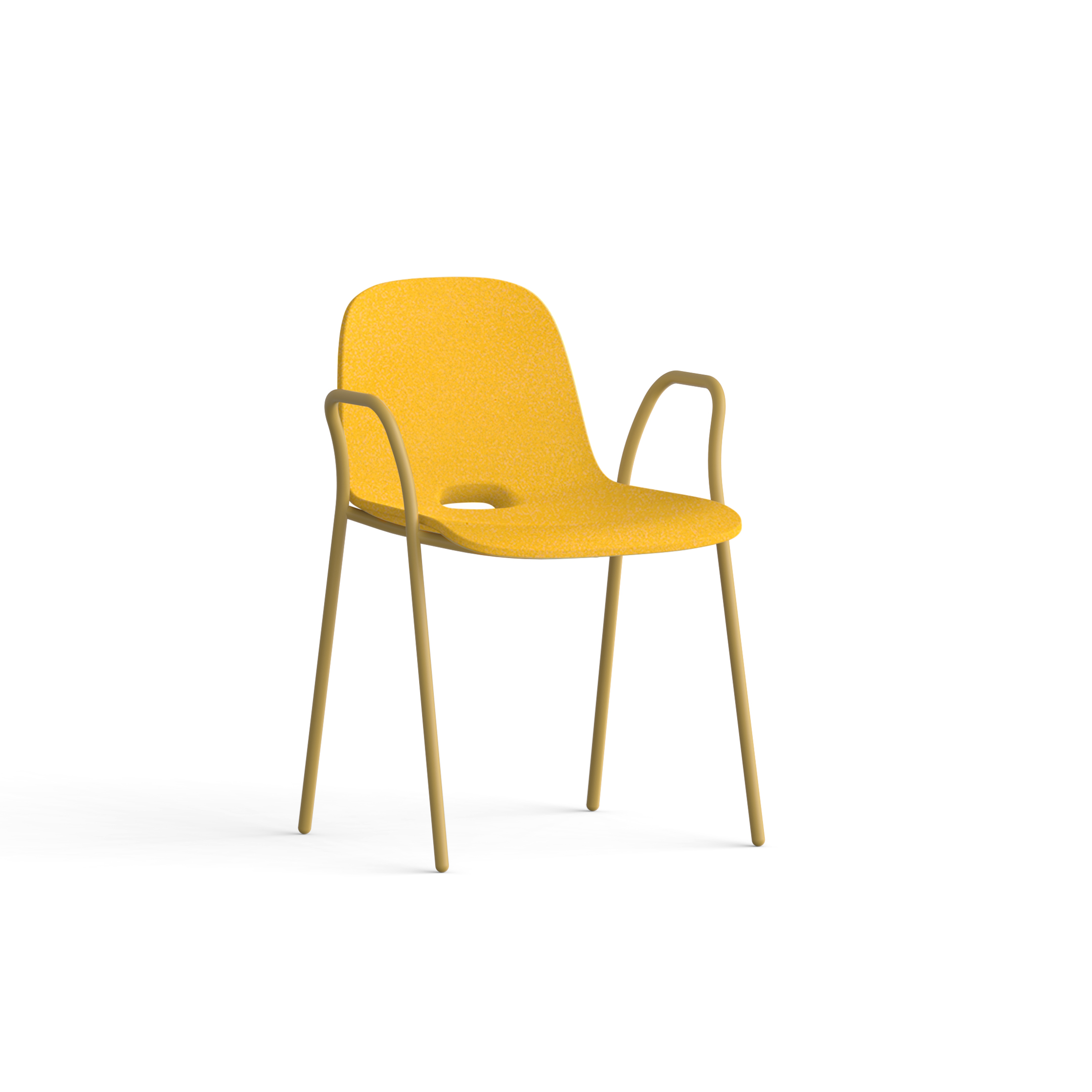 ALLin is a chair program built around a distinctively refined shell seat. The program offers a variety of structures and frames to support the seat, including metal, wood, and aluminum options. Thanks to the universal mounting system integrated beneath the seat, the program has limitless potential — from stackable chairs and wooden chair structures to even stadium seating. The chairs are suitable for both indoor and outdoor use, with the handle features doubling as a water drain for outdoor settings. Designed for strength and easy maintenance.