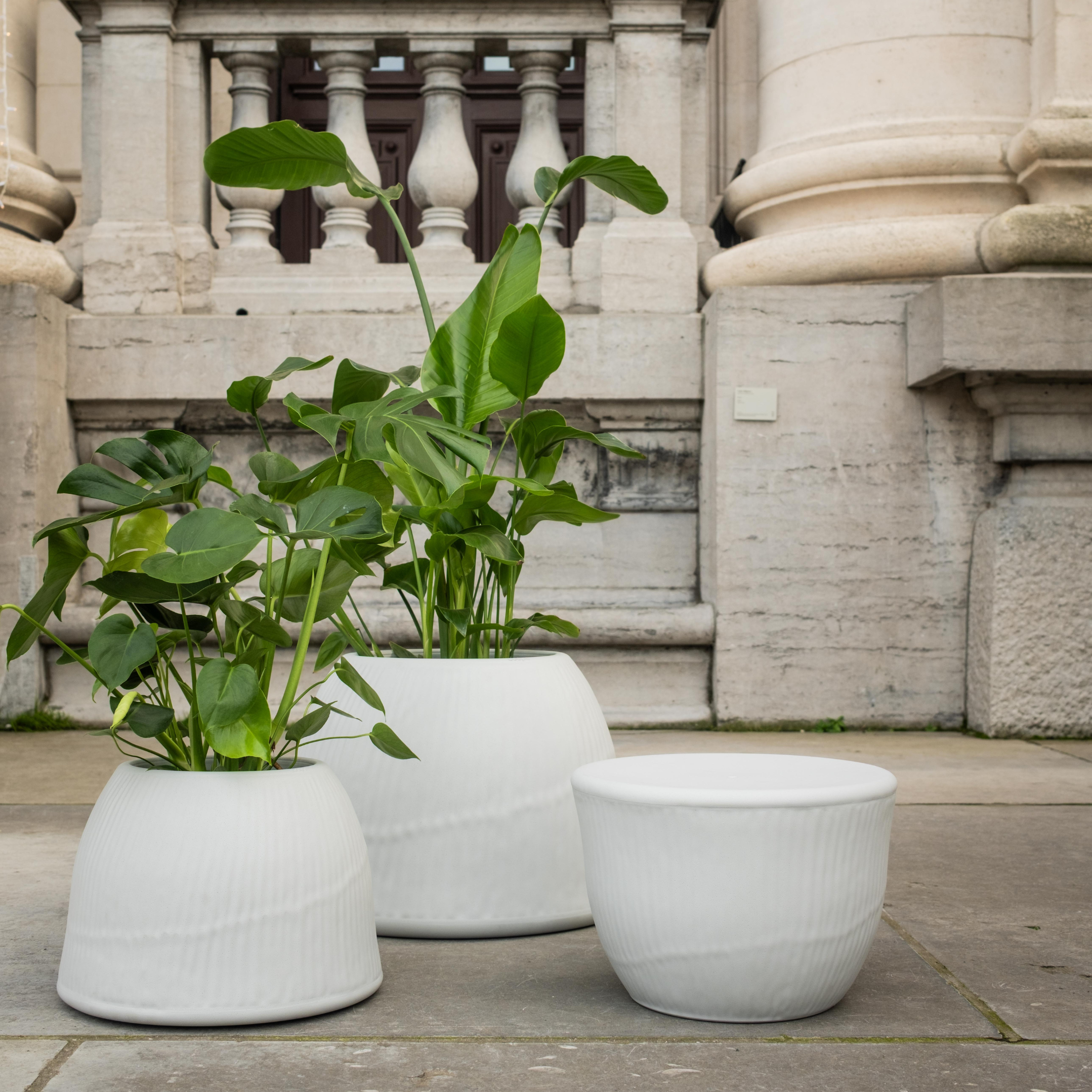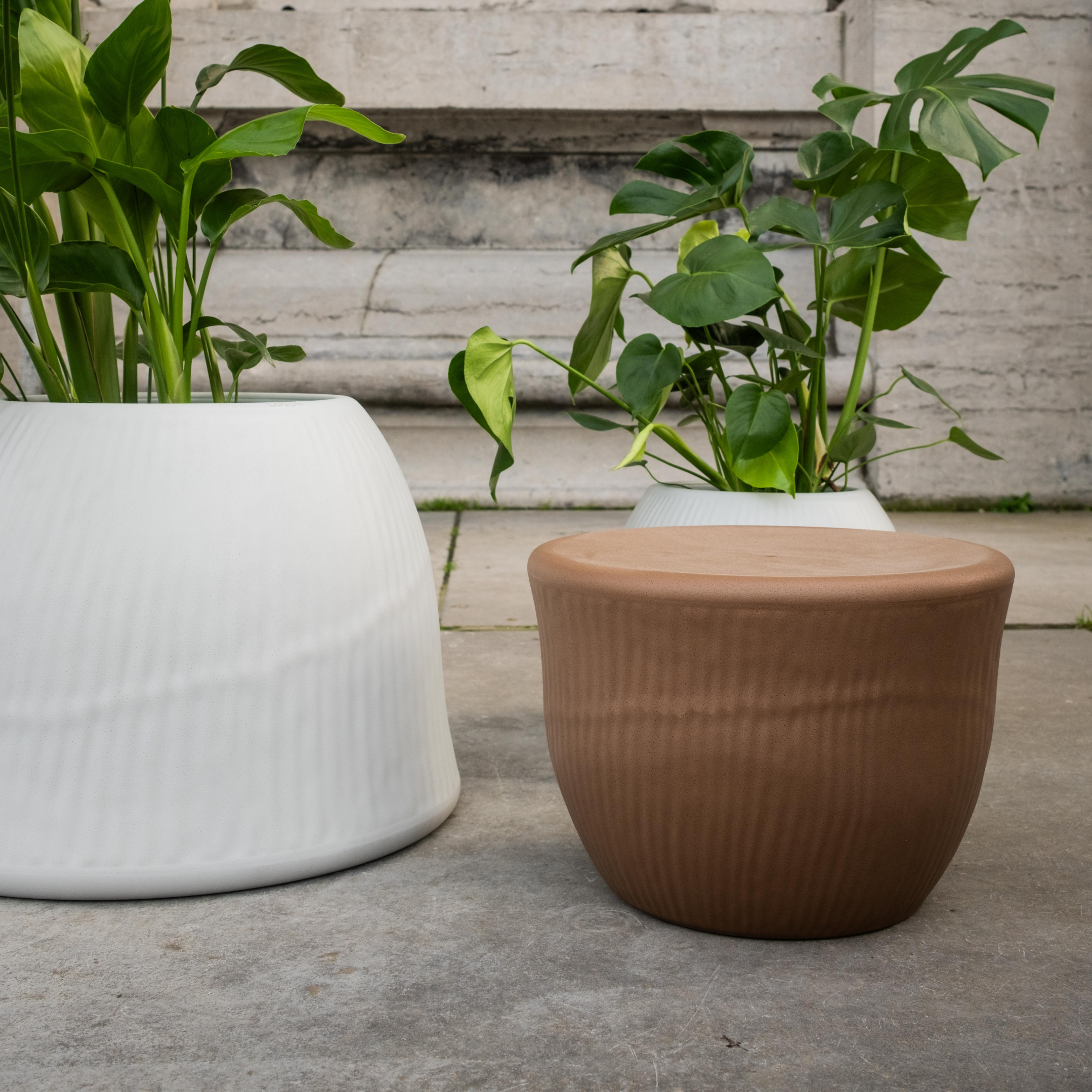 ECHO is designed to engage the senses by introducing a new layer of tactility, and started as an exploration of how craft can be translated into industrial production. Its form draws inspiration from wheel throwing, while the surface texture results from a hand-carved pattern that was 3D-scanned and merged into the final piece. This way, each piece carries the designer’s personal touch, and its handcrafted character remains preserved. Echo can be used individually or in sets, as it gains strength in volume when combined in different compositions and functions both indoors and outdoors, for semi-public or private use. Echo adapts to its user’s needs and can switch functions, whether as planters, coffee tables, side tables, stools, or wherever their creativity takes them.