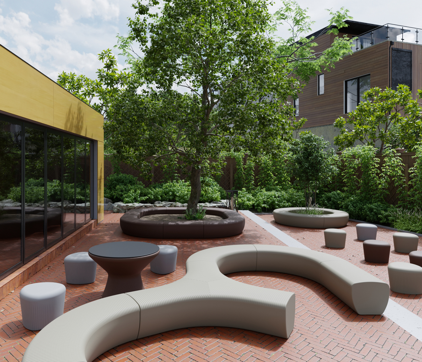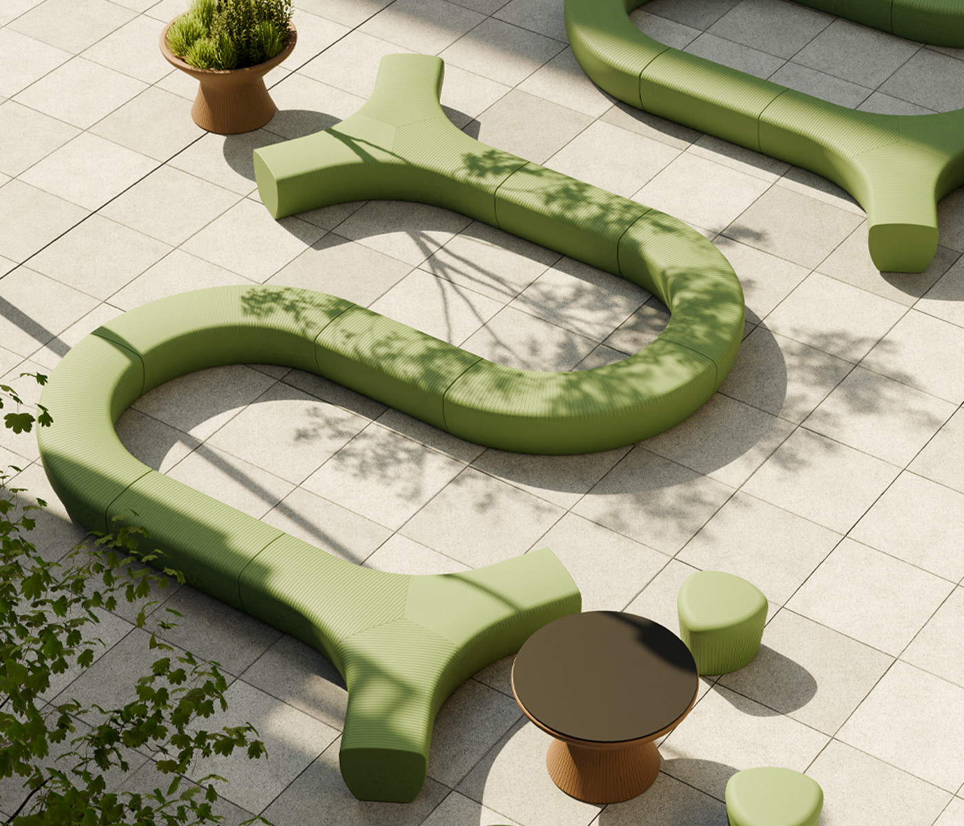 A modular furniture collection designed for public spaces, combines sculptural simplicity with practical adaptability. Inspired by flowing forms and circular connections, each module can be arranged in multiple configurations, allowing designers and architects to create seating landscapes that evolve with the needs of the space. The collection includes straight and curved benches, table, stool, flowerpot that encourage social interaction while maintaining visual harmony. Durable materials and weather-resistant finishes make the pieces suitable for both indoor and outdoor environments. Soft, continuous lines give the furniture a welcoming, contemporary character, while the modular logic ensures easy expansion and reconfiguration. All elements of this collection can be weighted with sand or anchored to the ground for increased stability.