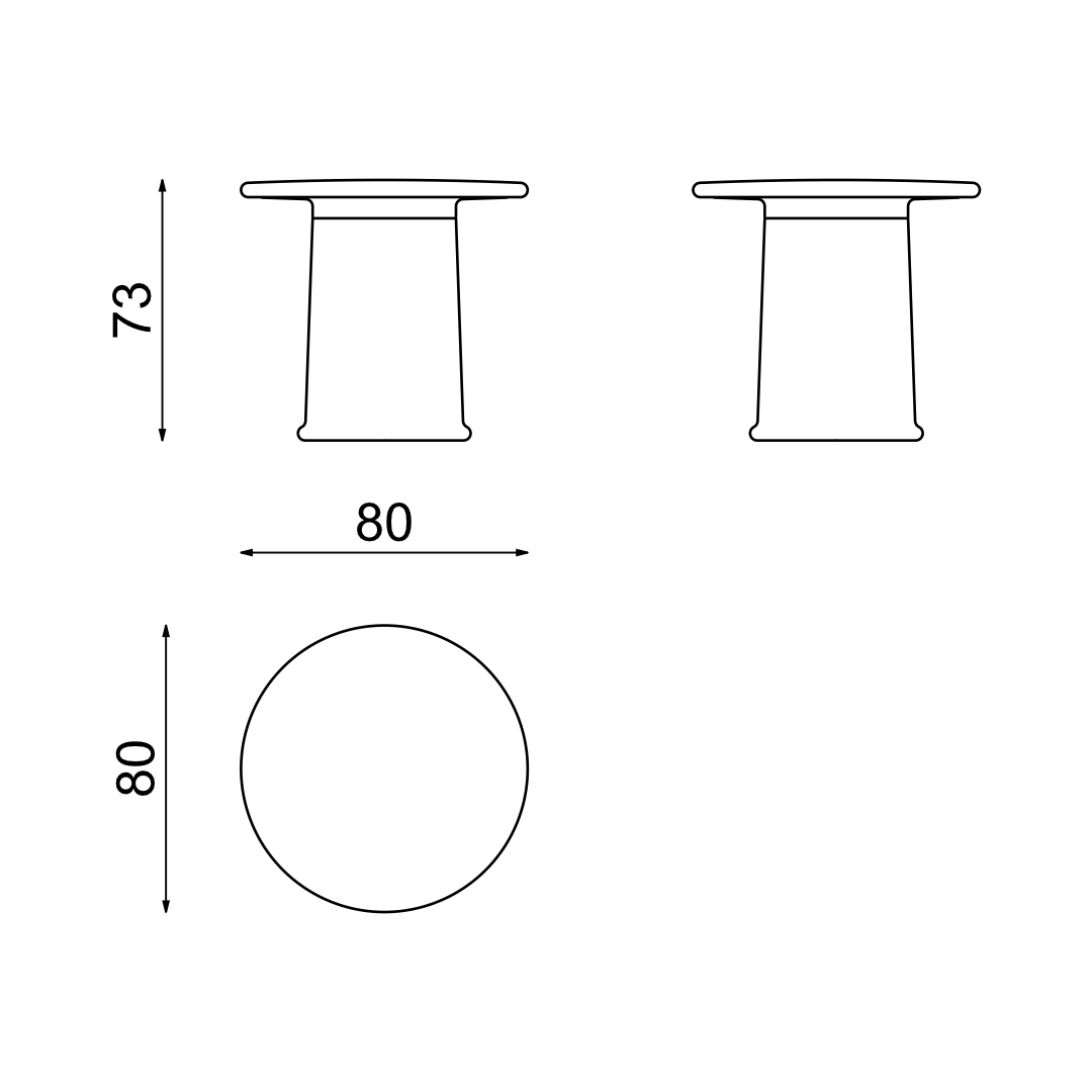 A distinctive rim detail enhances the comfort and ease of handling the tabletops, while a corresponding foot detail on the floor reinforces the cohesive and consistent character of the collection.